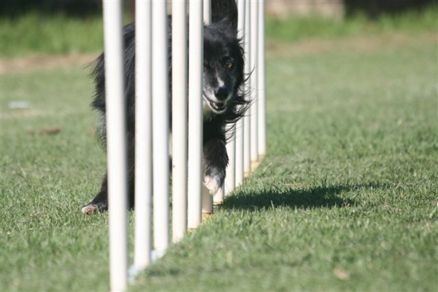 Weave poles, one of the hardest obsticles to train! But once you have them, its fun!!